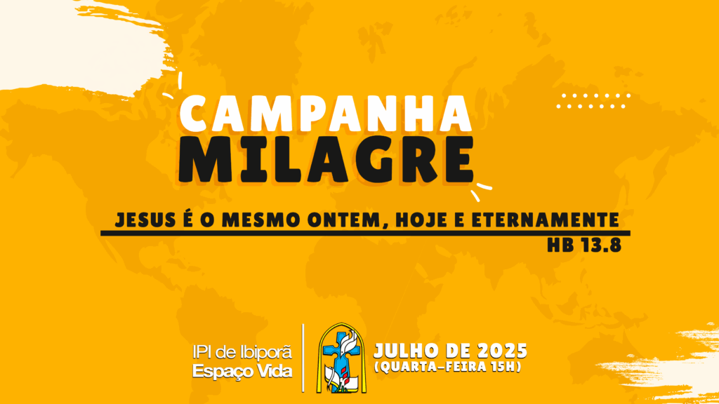 Durante o mês de julho, a IPI Espaço Vida viverá uma poderosa campanha de fé com o tema MILAGRE — um tempo de clamor, esperança e experiências com o sobrenatural de Deus.